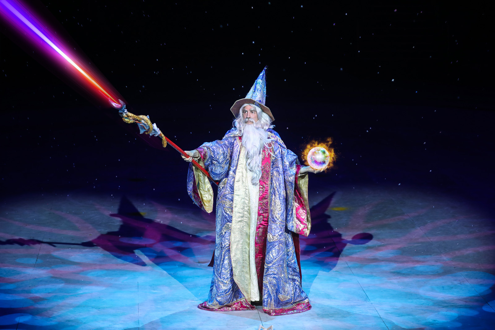 古老而又神秘的宝箱被魔咒封锁了几个世纪,从未有人能开启它。魔法师挥动手中的魔杖,施展强大的魔法将封锁宝箱的魔咒解除,两小丑打开尘封已久的宝箱,箱内闪闪发光,烟雾腾起,精灵们走出宝箱,白鸽空中飞舞,星空璀璨,精灵们骑着木马在空中飞舞。魔法师为观众们开启一段奇幻之旅…………